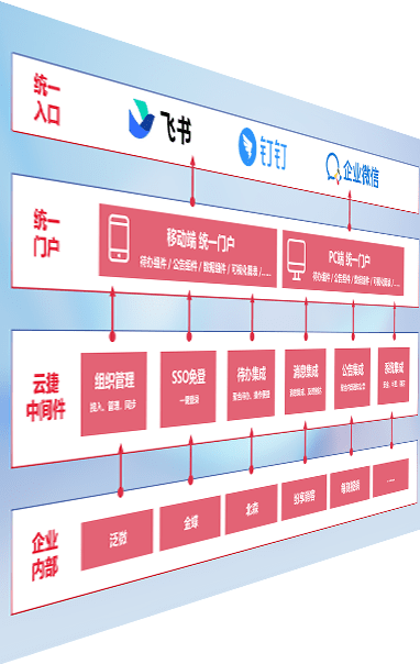 对协作平台提供支持服务,,支持企业应用与协作平台对接,,包含组织同步、、消息集成、、待办集成等。。。。支持目前主流的协作平台:钉钉、、、、企微和飞书。。。